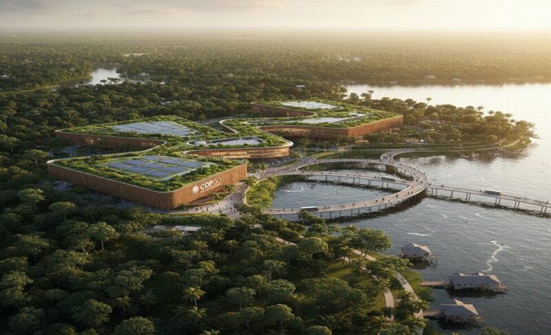 Aerial view of COP30 venue in Belém, Brazil, November 2025.