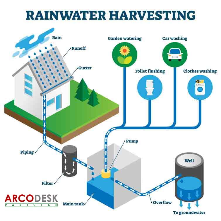 Pakistan faces severe water shortages. Annual rainfall averages 240 mm. Harvesting prevents floods and droughts. It supports agriculture, which uses 90% of water. Urban areas like Karachi benefit from reduced bills.